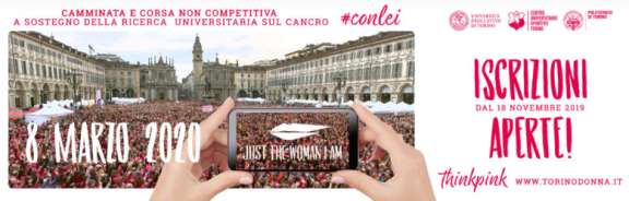 Torna con la sua settima edizione"Just the woman I am", la corsa in rosa per sostenere la ricerca universitaria sul cancro. L'appuntamento è organizzato dal CUS Torino ed è previsto l' 8 Marzo in Piazza San Carlo a Torino. Il ricavato delle iscrizioni, sarà devoluto in beneficienza alla ricerca universitaria sul cancro.